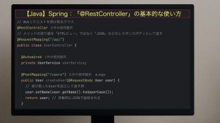 ■概要「@RestController」とは、RESTful Web API を作るためのコントローラクラスを定義するアノテーションであり、「@Controller」と「@ResponseBody」を組み合わせたようなもの。アノテーション概...